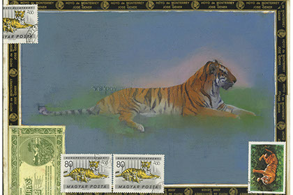 Tiger • Oil and Mixed Media Collage Cigar Box