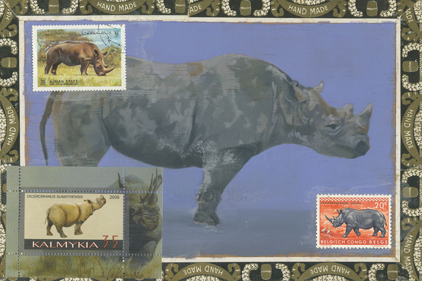 Rhino • Oil and Mixed Media Collage Cigar Box