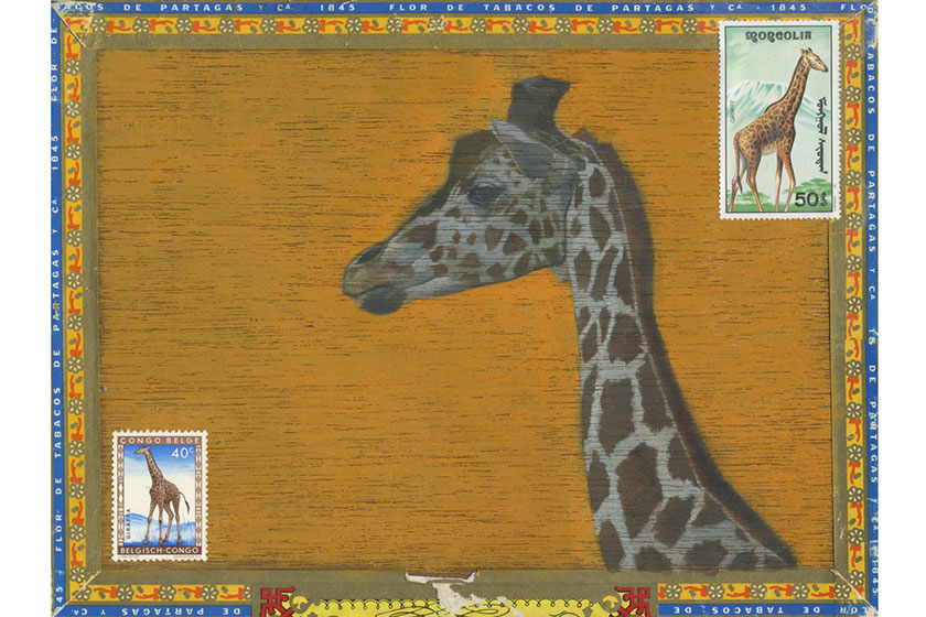 Giraffe • Oil and Mixed Media Collage Cigar Box